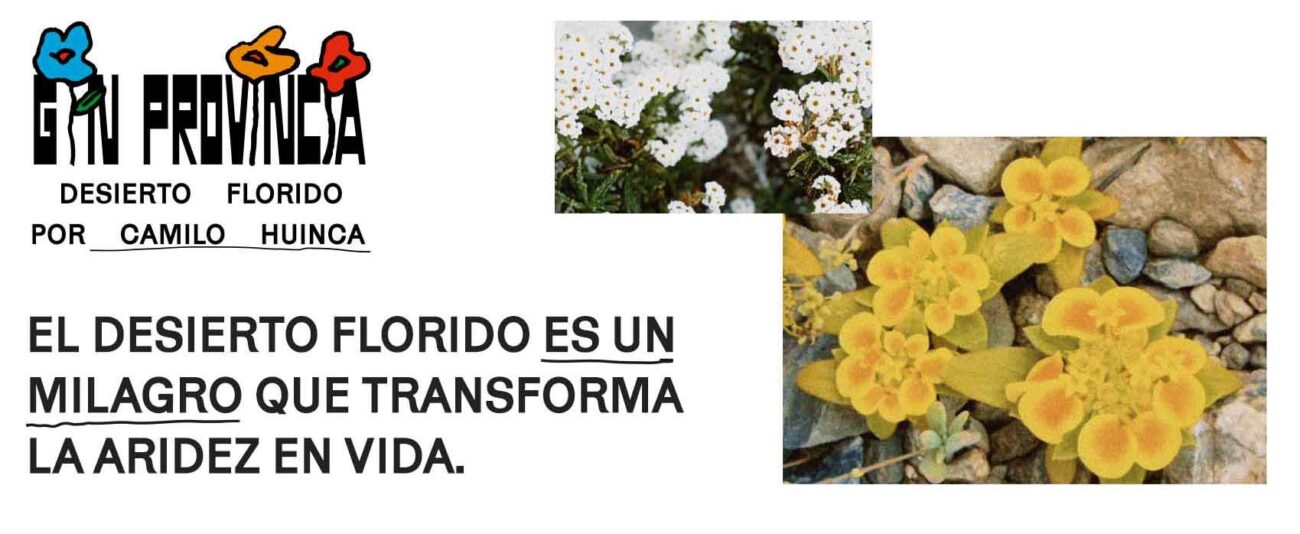 Esta es una colaboración entre Gin Provincia y el artista Camilo Huinca que nace como un homenaje al Desierto Florido, donde la aridez se transforma en un tapiz de color y vida. Inspirados en su belleza, fragilidad, sin utilizar ninguna flor del desierto, Resguardando así su ecosistema.
